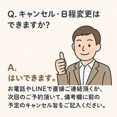 ご予約のよくあるご質問はは下にスクロールしてください。