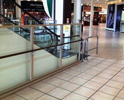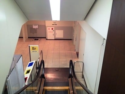 ①大階段の右手奥に下りエスカレータがございます。