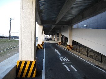 入口(〇)は2か所。平面駐車場と新幹線側道路にあります。